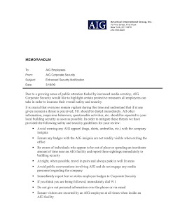 Shared on Mon, 03/23/2009 - 09:57AIG has some ballsy suits running it into the ground. They are actually attempting to recover $306 million dollars in taxes that they failed to keep from the government in offshore tax shelters. Yep, I think it's time to pull the plug on these boneheads. I suppose acts like these are the reason they have to sent out memos to their employees like this: