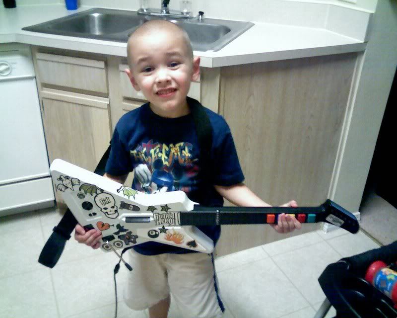 Shared on Mon, 07/30/2007 - 08:25The last month has seen us finish getting Stacy's dad moved out of his apartment and into our home. This past weekend, we moved her brother out of his one-bedroom apartment, into a 2-bedroom. Fun times. I did stumble across his Guitar Hero II gear and thought it would be cool to take a picture of the boys and Megan sporting the guitar pose. So here you go. Oh, and by the way, I'm sore....and it hurts.