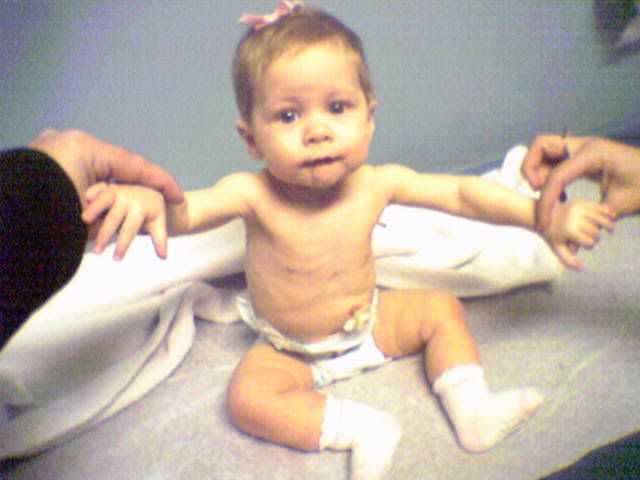 Ok, I had a hard time with this decision but I made it based on the simple fact that a lot of you all are praying for Megan. Simply stated, there is no other reason I post this than for all you who pray and think of my daughter daily, to see what exactly you are praying for. For those who do not want to look, I am posting a link, instead of th actual picture. It's nothing disgusting, it just might be a little hard to understand, or take in. This advice was given from Zero, and now that I think about it, it makes more sense. It's a picture of Meg in her diaper at the doctor's office today. It was a a tough picture to take, but I know deep inside, that it had to be done. After being weighed on Tuesday at 13lbs 4 oz, she lost those 4 ounces and is back at 13lbs even. I do this, not for any attention for myself, not to exploit my daughter, but I just want all you to see what you are praying for. If I get a lot of backlash from this, I'm sorry and I will take the link down. I believe, with all of my heart, that you all should see her in a different way. I am in no way a bad person, but I do know that God has really blessed my family and is taking care of Megan. I call this picture the "real" Megan. Not the Megan we are used to seeing everyday, looking normal with all the clothes she is wearing. I have to admit, she does look quite normal with a full set of clothes on. My family is grateful for everything you all, as a site, have done for Megan and for my family. Please, and again I stress, if you don't want to look, DON'T CLICK THE LINK.
