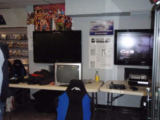 I headed over to GameUniverse (www.gameuniverseonline.com/) today in Framingham, MA (west of Boston) to check out a Street Fighter IV Tournament that they were hosting. If you live in the Greater Boston area and have never been to Game Universe, you owe it to yourself to check this place out. Situated in a rather non-descript basement location along Router 9, this place has a little bit of everything for the gaming enthusiast. They have a wide selection of new and used games and consoles, including current gen and vintage stuff. They also have 6 large flat-screen TV's where you can rent time to play your favorite games. They also have space for LAN's, coin-op machines and most importantly - A bathroom, so you never have to wander far from the action. If you get hungry, there is a McDonalds on one side and a pretty damn good Chinese restaurant on the other. I was speaking with the owners today about setting up some 2old2play events here (think local NE LANs and pre-PAX East parties), so stay tuned for details.