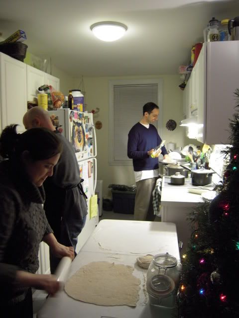 Amy decided to enlist Matt in the dough rolling process and things were looking up.