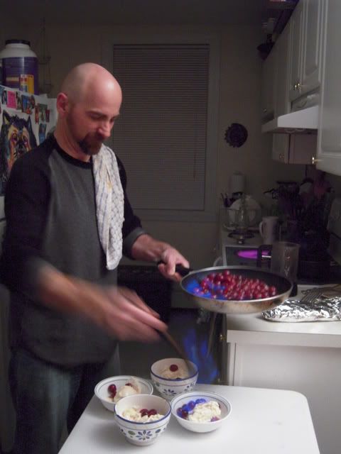 And finally, you have flaming cherries jubilee and ice cream - YUM!