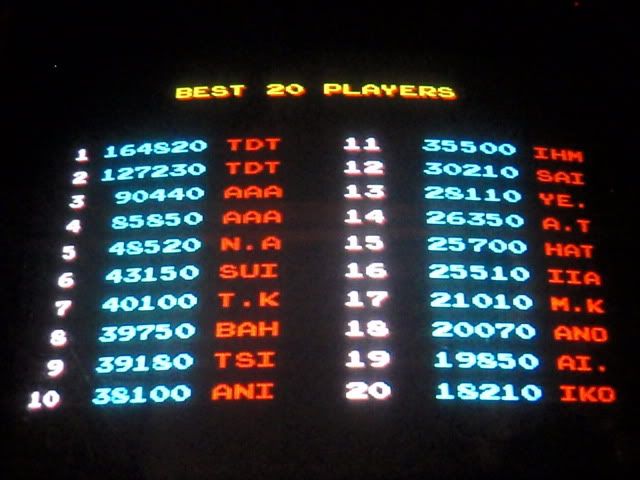 As you make your way up the Dragon Master's tower, you encounter different opponents, including somersaulting midgets, knife throwing ninjas in white and bosses that wield sitcks, boomerangs, knives and magic. Historically, I have always been able to get to the final level (Level 5) but have never defeated the last boss, Mr. X himself. Well tonight I finally got past the bastard and achieved a new personal best High Score of 164,820. By way of comparision, the official world record as noted by Twin Galaxies is 1,349,040 held by Mike Sullivan. So needless to say, I have some practicing to do.